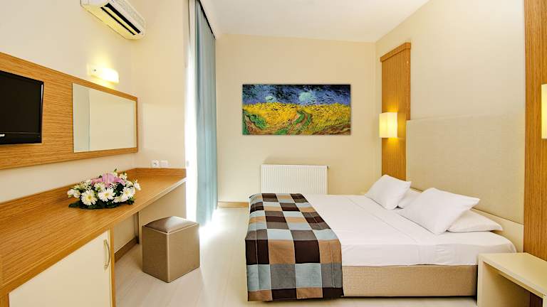 Die geräumigen und modernen Zimmer im The Panorama Hill Hotel bieten Ihnen Komfort und einen Balkon, von dem aus Sie entweder einen Blick auf das Meer oder auf Kuşadası genießen können. Die Zimmer sind mit Klimaanlage, Flachbild-TV, Kühlschrank und kostenfreiem WLAN ausgestattet. Im privaten Badezimmer finden Sie kostenfreie Pflegeprodukte und Bademäntel.