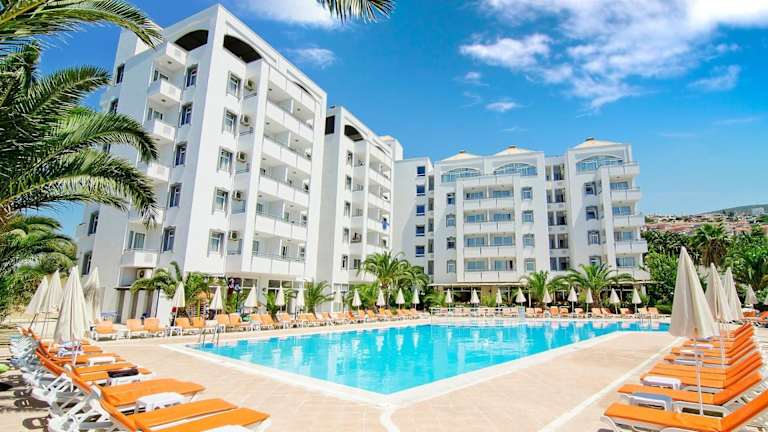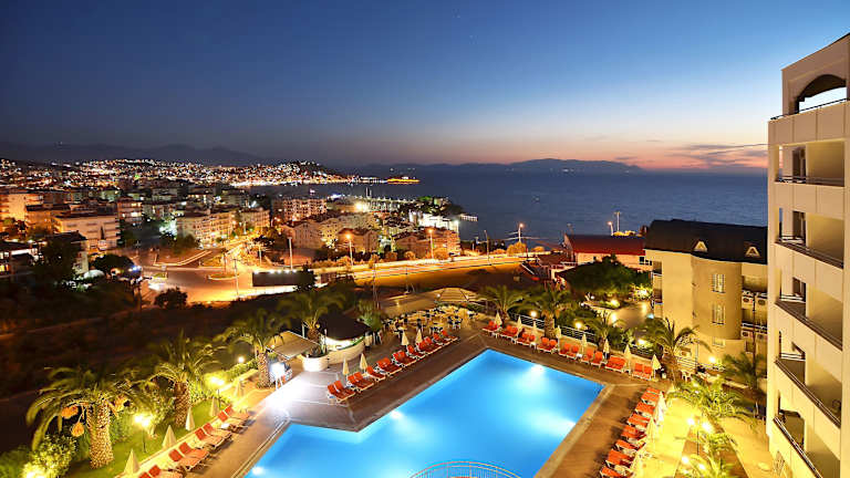 Das The Panorama Hill Hotel in Kuşadası bietet einen atemberaubenden Blick auf die Ägäis und ist der ideale Ort für einen erholsamen Urlaub. Genießen Sie den Wellnessbereich, die Sporteinrichtungen und den Außenpool mit Sonnenterrasse. Die geräumigen und modernen Zimmer bieten Ihnen Komfort und eine wunderschöne Aussicht auf das Meer oder auf Kuşadası. Starten Sie Ihren Tag mit einem leckeren Frühstück vom Buffet und lassen Sie sich auch mittags und abends im Restaurant oder auf der überdachten Terrasse verwöhnen. Der Wellnessbereich lädt mit einem Türkischen Bad, einer Sauna und Massagen zum Entspannen ein. Für Aktivitäten stehen Ihnen Tennis- und Tischtennisplätze sowie ein Billardtisch zur Verfügung. Das freundliche Personal an der 24-Stunden-Rezeption unterstützt Sie gerne bei der Organisation von Ausflügen und der Buchung von Tickets. Besuchen Sie auch die antiken Ruinen von Ephesus, die nur eine kurze Fahrt vom Hotel entfernt liegen.
