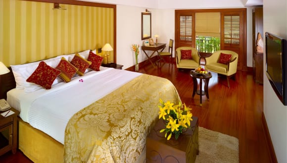 Die gastronomischen Angebote umfassen drei Restaurants, ein Café und eine Bar. Das rund um die Uhr geöffnete Café Sidewalk serviert ein internationales Frühstücksbuffet, während das Restaurant Masala Dani gehobene indische Küche in elegantem Ambiente bietet. Im Vembanad werden regionale Spezialitäten aus Kerala und andere typische Gerichte zubereitet.