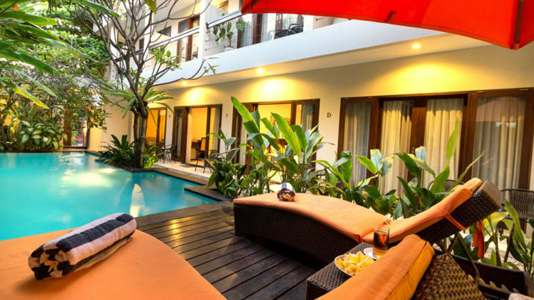 Das The Pavilion Hotel Kuta ist eine ideale Wahl für Reisende, die eine günstige Lage in Kuta und eine entspannte Atmosphäre inmitten tropischer Vegetation suchen. Mit einem Außenpool, einem Businesscenter und einer rund um die Uhr geöffneten Rezeption bietet das Hotel allen Gästen einen angenehmen Aufenthalt. Kostenloses WLAN in den öffentlichen Bereichen ist ein weiterer Pluspunkt. Die gut ausgestatteten, klimatisierten Zimmer verfügen über einen Flachbild-TV, eine Terrasse oder einen Balkon mit Poolblick und einige Zimmer bieten sogar einen Smart-TV. Das freundliche Personal steht Ihnen jederzeit zur Verfügung und hilft Ihnen gerne bei Wäschemöglichkeiten oder Fax-/Kopieranfragen. Zusätzliche Leistungen wie Motorradverleih, Flughafentransfers und Tagestouren können gegen Aufpreis arrangiert werden. Die Gepäckaufbewahrung ist kostenlos.