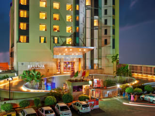 Das Hotel The Regenza By Tunga in Navi Mumbai bietet modern eingerichtete Zimmer im Stadtzentrum. Neben einem Innenpool verfügt es über ein Spa und ein Fitnesscenter. Die klimatisierten Zimmer sind mit dunklen Holzmöbeln und einem gemütlichen Sitzbereich ausgestattet. Jedes Zimmer verfügt über einen persönlichen Safe, eine Minibar und Tee-/Kaffeezubereitungsmöglichkeiten. Das Hotel befindet sich nur 4 km vom DY Patil Stadium entfernt und der internationale Flughafen Chattrapathi Shivaji ist 23 km entfernt. Entspannen Sie sich am großen Innenpool oder genießen Sie Schönheitsanwendungen im Spa. Das Personal steht Ihnen rund um die Uhr zur Verfügung und hilft Ihnen gerne bei Reisebuchungen. Das Hotel verfügt über drei Restaurants, darunter ein vegetarisches Restaurant und ein Fischrestaurant. An der Bar können Sie Getränke genießen.