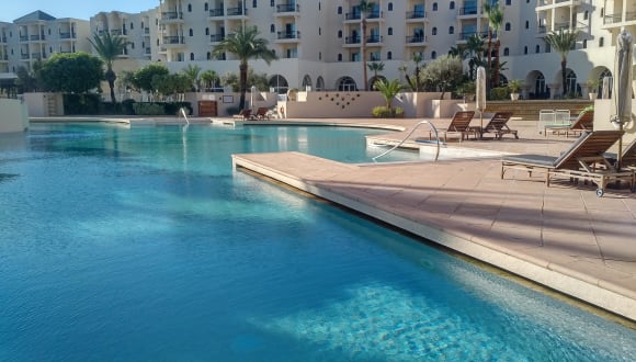 Das Hotel The Residence Tunis in Gammarth bietet Ihnen einen luxuriösen Aufenthalt mit Blick auf den Golf von Tunis. Hier erwarten Sie ein Golfplatz, 2 Pools und insgesamt 6 Restaurants, darunter ein Restaurant am hoteleigenen Privatstrand. Die geräumigen Zimmer verfügen über einen Balkon mit Meerblick oder Blick auf den Garten. Genießen Sie eine Vielzahl von Gerichten, von leichten Salaten bis hin zu traditioneller tunesischer Küche, in den hoteleigenen Restaurants. Als Gast haben Sie Zugang zu einem luxuriösen Thalasso-Spa- und Fitnesscenter. Das Hotel bietet zudem einen 24-Stunden-Service und hilft Ihnen gerne bei der Buchung von Aktivitäten. Das Hotel liegt in der Nähe des internationalen Flughafens Tunis-Karthago und ist ein idealer Ausgangspunkt, um die umliegende Gegend zu erkunden.