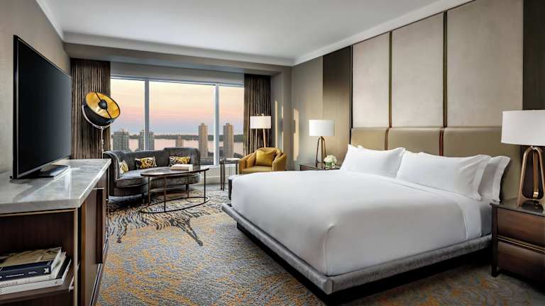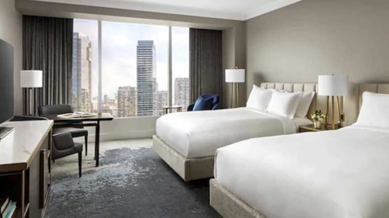 Das The Ritz-Carlton, Toronto befindet sich zentral in der Innenstadt und bietet einen Blick auf den Ontariosee sowie die Skyline von Toronto. In unmittelbarer Nähe liegen Sehenswürdigkeiten wie der CN Tower, das Ripley's Aquarium, die Hockey Hall of Fame, das Rogers Centre, die Scotiabank Arena und das Princess of Wales Theatre. Der Flughafen Toronto Pearson International Airport ist etwa 20 km entfernt, während das Stadtzentrum in ca. 1 km erreichbar ist.