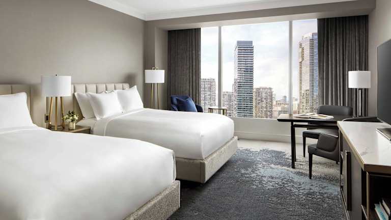 Die Zimmer im The Ritz-Carlton, Toronto variierten von Doppelzimmern mit Stadtblick bis hin zu Suiten, die zusätzliche Annehmlichkeiten bieten. Alle Zimmer verfügen über WLAN, einen 42-Zoll-LCD-Flachbild-HD-TV, eine individuell regelbare Klimaanlage sowie tiefe Badewannen und deckenhohe Fenster. In den Zimmern finden sich zudem Kühlschrank und Kaffee-/Teezubereiter. Die Zimmer sind elegant eingerichtet und bieten Komfort für die Gäste.