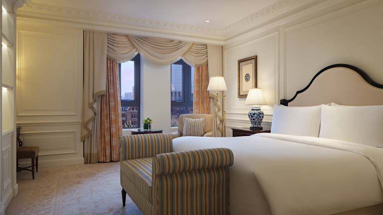 Das The Ritz-Carlton Tianjin verfügt über 268 Zimmer, die alle im luxuriösen Kunststil gestaltet sind. Die Zimmer bieten eine stilvolle und komfortable Atmosphäre mit hochwertigen Betten, einem 46-Zoll-LED-TV, kostenlosem WLAN und einem geräumigen Badezimmer mit einer eingebauten TV-Spiegelfläche, einer Badewanne und hochwertigen Pflegeprodukten.