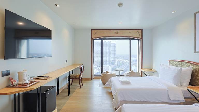 Das Hotel bietet 12 Suiten und 436 Doppelzimmer, die alle mit Klimaanlage, Wohnzimmer und eigenem Bad ausgestattet sind. Die Zimmer verfügen über ein Doppelbett, einen Safe, eine Minibar, einen Schreibtisch, einen Kühlschrank, eine Tee-/Kaffeemaschine und WLAN-Zugang. Die Badezimmer sind mit Dusche, Badewanne, Haartrockner und Bademänteln ausgestattet.