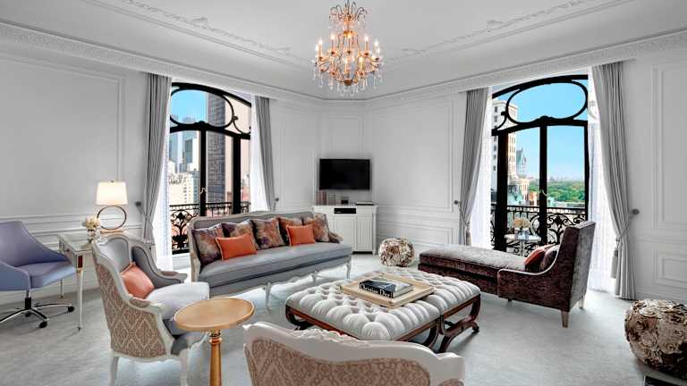 Die geräumigen Zimmer im The St. Regis New York bieten modernen Komfort und stilvolle Einrichtung. Zur Ausstattung gehören ein Flachbild-Kabel-TV, ein bequemer Sitzbereich mit Sofa und Schreibtisch, eine Minibar, ein Kühlschrank, Bademäntel und ein Safe. WLAN ist ebenfalls verfügbar. Darüber hinaus können die Gäste den rund um die Uhr angebotenen Butlerservice nutzen.
