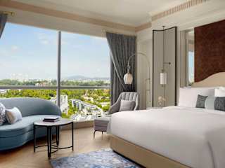 Die Zimmer sind im europäischen Stil eingerichtet und bieten Annehmlichkeiten wie Flachbild-TV, DVD-Player und Bose Surround-Soundsystem. Ein französisches Marmorbad, ein Doppelwaschbecken, Regendusche und Pflegeprodukte von Laboratoire Remède sind ebenfalls Teil der Ausstattung. Zu den weiteren Annehmlichkeiten zählen Klimaanlage, Minibar, Safe, Schreibtisch und kostenloses WLAN. Einige Zimmer verfügen über Balkon oder Terrasse, und es sind rollstuhlgerechte Zimmer verfügbar.