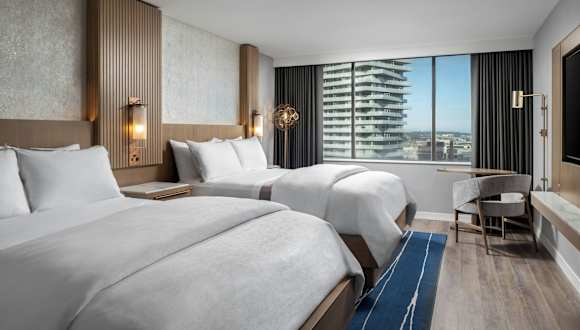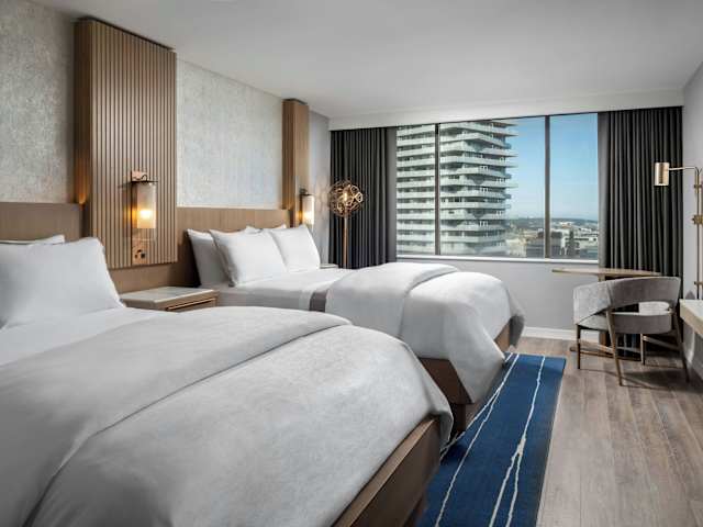 Das Hotel bietet eine Vielzahl moderner, eleganter Einrichtungen und einen beeindruckenden Ausblick auf das geschäftige Geschäfts- und Unterhaltungsviertel. Die Unterkunft verfügt über 977 Zimmer, die luxuriös ausgestattet sind und erstklassigen Komfort bieten. Zum Hotel gehören unter anderem ein Indoor-Pool, ein Fitnesscenter, Tennisplätze auf dem Dach sowie ein Restaurant und mehrere Bars.
