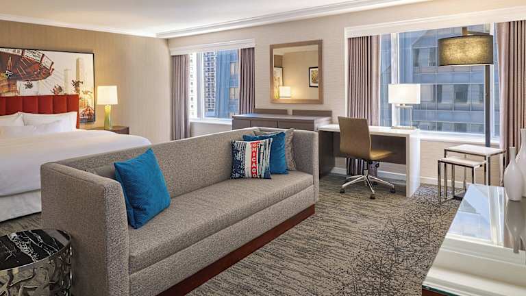 Das Hotel verfügt über 752 Zimmer auf 27 Etagen, die mit einem Aufzug erreichbar sind. Die Zimmer sind komfortabel eingerichtet und verfügen über eine Klimaanlage, Heizung, Safe, Minibar und Schreibtisch. Zur Ausstattung gehören auch ein Kühlschrank, eine Mikrowelle, eine Tee-/Kaffeemaschine und ein Bügelset. Die Badezimmer sind mit einer Dusche oder Badewanne, einem Haartrockner und Bademänteln ausgestattet. Familien- und Nichtraucherzimmer stehen ebenfalls zur Verfügung.