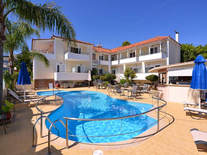 Das Theoxenia Hotel Apartments bietet einen privaten Swimmingpool mit Liegen und Sonnenschirmen, ideal zum Entspannen und Sonnenbaden. Das Hotel organisiert auch verschiedene Unterhaltungsprogramme, darunter griechische Musikabende und Partys am Nachmittag. In der Umgebung finden Sie auch Möglichkeiten zum Einkaufen, Supermärkte, Autovermietungen und öffentliche Verkehrsmittel für weitere Freizeitaktivitäten.