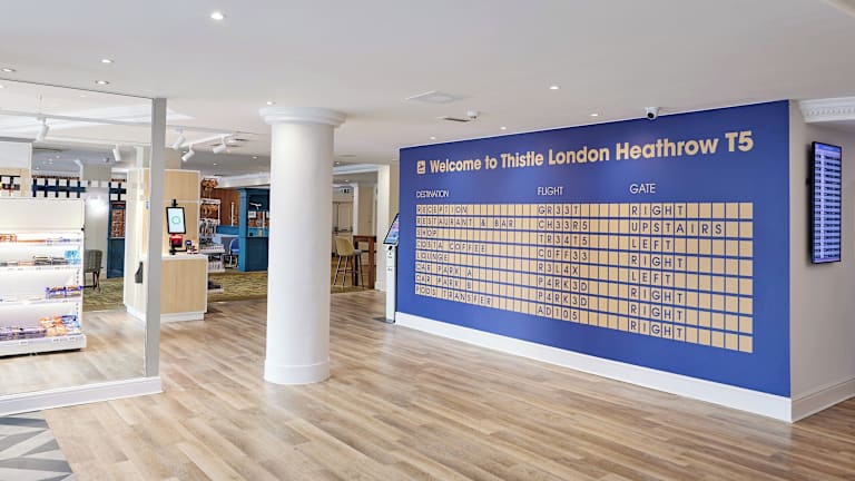 Das Thistle London Heathrow Terminal 5 ist ein ideales Hotel für Reisende, die eine komfortable Übernachtungsmöglichkeit in der Nähe des Flughafens Heathrow suchen. Mit seiner 24-Stunden-Rezeption und der günstigen Lage direkt an der Autobahn A4 bietet das Hotel einen bequemen Zugang zum Terminal 5. Die Zimmer sind modern eingerichtet und verfügen über Annehmlichkeiten wie kostenfreies WLAN, einen Flachbildfernseher und eine Klimaanlage. Das Hotel bietet auch ein Restaurant mit Blick auf die Start- und Landebahn des Terminals 5 sowie eine rund um die Uhr geöffnete Lobby Lounge Bar.