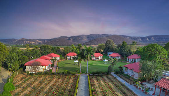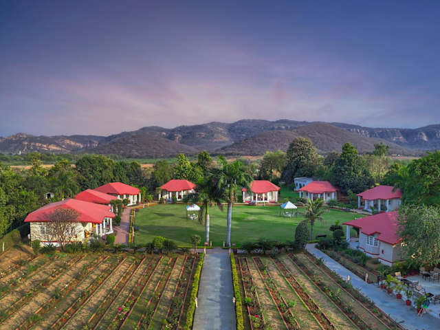 Das Tiger Den Resort liegt in Khilchipur, etwa 43 km vom Nationalen Chambal-Heiligtum entfernt. Die Umgebung bietet eine malerische Landschaft und viele Möglichkeiten für Outdoor-Aktivitäten. Der nächstgelegene internationale Flughafen befindet sich in Jaipur, etwa 140 km vom Resort entfernt.