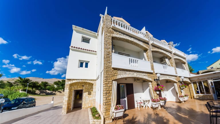 Das Hotel Tony in Pag bietet seinen Gästen einen entspannten Aufenthalt in einer freundlichen Atmosphäre. Das Hotel verfügt über 20 Zimmer und ein mehrsprachiges Personal, das den Gästen gerne zur Seite steht. Zur Ausstattung gehören ein Restaurant, ein TV-Raum und ein Transferservice. WLAN ist in den öffentlichen Bereichen verfügbar und ein Garten lädt zum Entspannen im Freien ein. Das Hotel bietet Parkmöglichkeiten gegen Gebühr. Die Zimmer sind komfortabel eingerichtet und verfügen über Klimaanlage, Heizung, TV, Balkon oder Terrasse und WLAN. Einige Zimmer bieten einen herrlichen Meerblick. Das Hotel Tony bietet auch Sport- und Freizeitmöglichkeiten wie Tennis, Volleyball, Handball und Basketball.