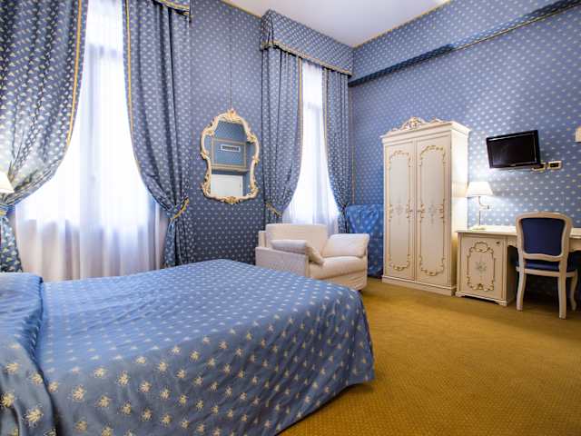 Das Hotel Torino bietet eine Auswahl an Zimmern im Barock-Stil, die einen gemütlichen und komfortablen Rückzugsort bieten. Die meisten Zimmer befinden sich im Hauptgebäude und sind mit einem Aufzug erreichbar. Weitere Zimmer und Apartments sind in nahegelegenen Gebäuden verfügbar. Alle Zimmer verfügen über ein eigenes Bad und sind mit modernen Annehmlichkeiten wie kostenlosem WLAN, Sat-TV und Klimaanlage ausgestattet.
