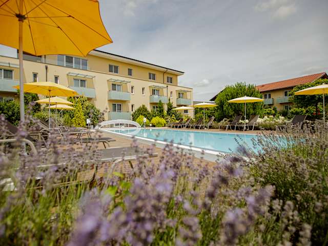 Entspannen Sie in unserem toskanischen Garten um den Aussenpool. In unserem 15m x 4m großen Süsswasser Aussenpool können Sie sich von Mai bis September erfrischen. Er ist umgeben vom toskanischen Garten und einer Liegewiese mit Liegen und Sonnenschirmen.