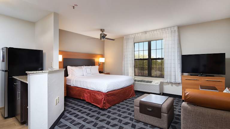 Die 76 Zimmer des TownePlace Suites Tucson sind auf 3 Etagen verteilt und bieten eine komfortable und gut ausgestattete Unterkunft. Jede Suite verfügt über eine komplett ausgestattete Küche mit Küchengeräten und -utensilien, eine Minibar und einen Schreibtisch. Zur Ausstattung gehören auch ein Safe, ein TV und kostenfreies WLAN.