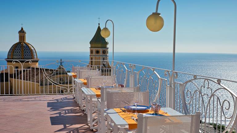 Im Restaurant des Hotels können Sie sowohl im Speiseraum als auch auf der Terrasse speisen und dabei den Blick auf Positano und die Küste genießen. Das freundliche Personal serviert Ihnen kampanische Spezialitäten sowie auf Anfrage vegetarische Gerichte und Kindermenüs. Ein reichhaltiges Frühstücksbuffet wird auf der Panoramaterrasse serviert.