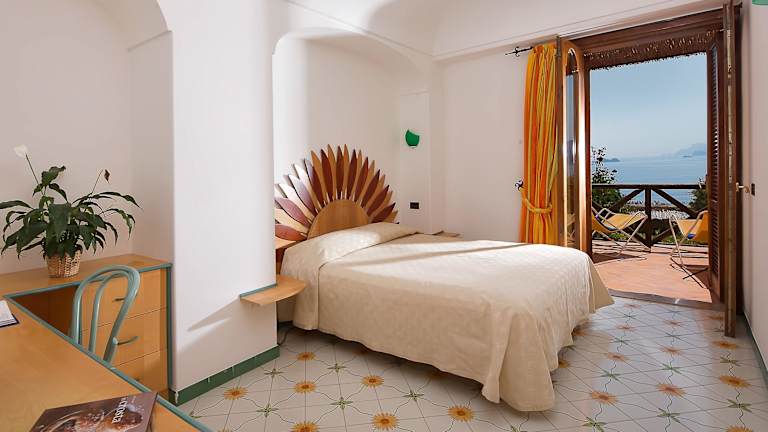 Das Hotel Tramonto d'Oro verfügt über 38 individuell eingerichtete Zimmer, die mit kostenfreiem Internetzugang, Sat-TV und einer Minibar ausgestattet sind. Die meisten Zimmer bieten einen atemberaubenden Blick auf Positano und die Küste. Die Badezimmer sind mit handbemalten Fliesen aus Vietri verziert.