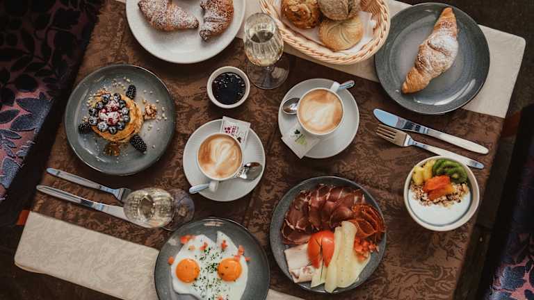Jeden Morgen von 07:30 Uhr genießen Sie ein reichhaltiges Frühstücksbuffet mit regionalen und hausgemachten Produkten.