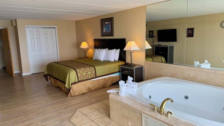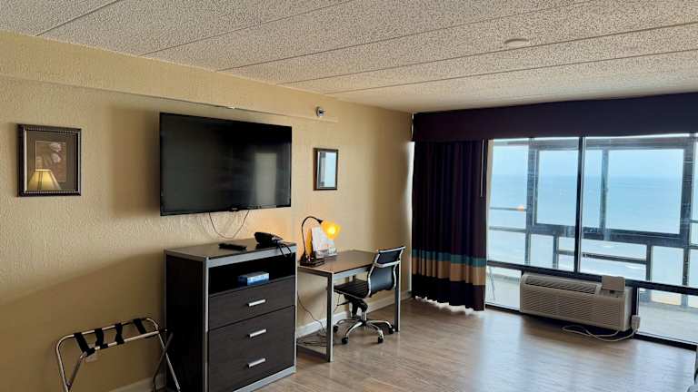 Die Zimmer im Travelodge by Wyndham Suites Virginia Beach Oceanfront sind komfortabel eingerichtet und verfügen über Annehmlichkeiten wie kostenfreies WLAN, Klimaanlage, Kabel-TV, Mikrowelle, Kühlschrank, Haartrockner und Bügeleisen. Jedes Zimmer bietet zudem einen Balkon mit Meerblick, auf dem Sie die frische Meeresluft genießen können.