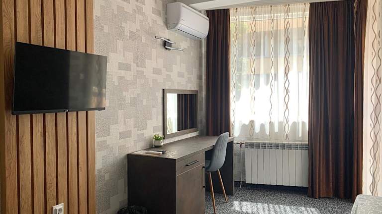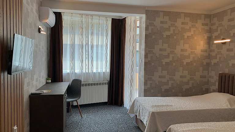 Das Hotel Trayana in Stara Zagora bietet seinen Gästen einen angenehmen Aufenthalt in zentraler Lage. Die Zimmer und Suiten sind komfortabel ausgestattet und verfügen über kostenfreies WLAN. Das Hotel überzeugt zudem mit einem Restaurant, einer Bar und einer 24-Stunden-Rezeption. Die Nähe zum Haupteinkaufsviertel und zu öffentlichen Verkehrsmitteln machen das Hotel zu einem idealen Ausgangspunkt, um die Stadt zu erkunden.