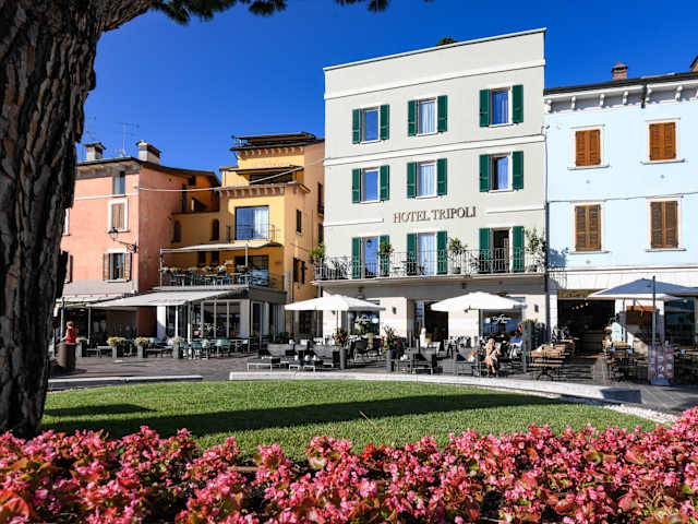 Das Hotel Tripoli befindet sich in Desenzano del Garda und bietet eine traumhafte Lage direkt am malerischen Hafen. Von Ihrem Zimmer aus genießen Sie eine fantastische Aussicht auf den Gardasee. Die zauberhafte Altstadt von Desenzano del Garda ist nur wenige Schritte vom Hotel entfernt und bietet traditionelle Eisdielen, Märkte, Cafés und Restaurants. Die Fähren sowie die nahe gelegenen Bus- und Bahnstationen ermöglichen es Ihnen, die Umgebung leicht zu erkunden.
