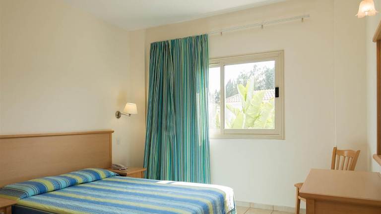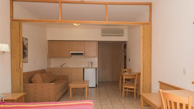 Die Zimmer sind mit einer Küche, einem Badezimmer, einem Doppelbett oder einem Sofabett sowie einem Balkon oder einer Terrasse mit Gartenblick ausgestattet. Zur weiteren Ausstattung gehören eine Klimaanlage, eine Kochnische mit Kühlschrank, Mikrowelle, und Tee-/Kaffeemaschine. Ein Telefon, ein TV-Gerät mit Satelliten-/Kabelempfang, ein Safe, eine Minibar sowie ein Badezimmer mit Dusche und Badewanne runden die Ausstattung ab. Zustellbetten können auf Anfrage bereitgestellt werden.
