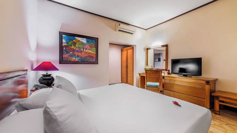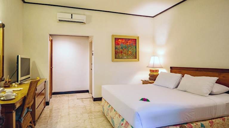 Die Zimmer im Hotel Tugu Blitar sind komfortabel und bieten eine einladende Atmosphäre. Jedes Zimmer ist klimatisiert und verfügt über Annehmlichkeiten wie eine Minibar und einen Haartrockner. Tageszeitungen und Hausschuhe sind ebenfalls vorhanden und tragen zu einem angenehmen Aufenthalt bei.