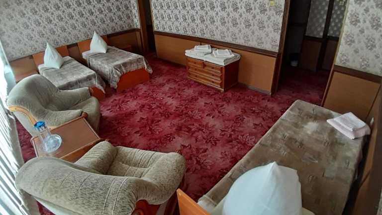Die Zimmer im Hotel Turist sind klassisch eingerichtet und bieten Ihnen einen komfortablen Aufenthalt. Zur Ausstattung gehören ein TV und ein eigenes Badezimmer. Einige Zimmer sind klimatisiert und verfügen über einen Balkon sowie einen separaten Wohn-, Ess- und Schlafbereich mit antiken Möbeln.