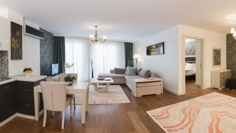 Das Turkuaz Suites Bosphorus ist ein stilvolles Hotel im Herzen von Istanbul, das mit modernen Apartments und einer entspannten Atmosphäre überzeugt. Genießen Sie den Komfort einer voll ausgestatteten Küche, kostenfreies WLAN und den freundlichen Service des 24-Stunden-Rezeptionsteams. Beginnen Sie Ihren Tag mit einem traditionellen türkischen Frühstück und erkunden Sie die umliegenden Restaurants und Märkte zu Fuß. Die zentrale Lage ermöglicht Ihnen zudem eine einfache Anbindung an die historischen Sehenswürdigkeiten der Stadt.