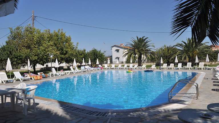 Entspannen Sie am Pool auf den Liegestühlen der Sonnenterrasse oder nutzen Sie die Gemeinschaftslounge. Der große, gepflegte Garten rund um die Unterkunft lädt zum Verweilen ein. In der Umgebung finden Sie auch eine Vielzahl von Tavernen, Café-Bars und einen Supermarkt.