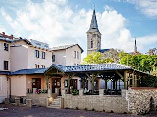 Die Zimmer sind mit einem TV und kostenfreiem WLAN ausgestattet. Des Weiteren verfügen sie über einen Schreibtisch und einen Sitzbereich. Die Einrichtung der Zimmer passt zur mittelalterlichen Atmosphäre der historischen Stadt.