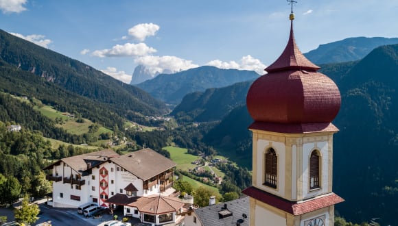 Willkommen Im Hotel Überbacher Ihr erholsamer Urlaub in Lajen - Südtirol, auf 1.210 Höhenmetern Idyllische Wiesen und Wälder vor atemberaubender Berglandschaft: Ruhig, inmitten der herrlichen Naturlandschaft des kleinen Bergdorfes St. Peter/ Lajen am Eingang des Grödnertales gelegen, lädt unser familiengeführtes Hotel Restaurant Überbacher auf einen entspannten Urlaub in Südtirol ein. Verbringen Sie unvergessliche Momente inmitten des einzigartigen UNESCO Weltnaturerbes Dolomiten und entdecken Sie Südtirol von seiner schönsten Seite! Ein erlebnisreicher Urlaubstag lässt sich am besten in unserem Wellnessbereich mit Schwimmbad, Whirlpool und Sauna oder in unserem Restaurant mit kulinarischen Gaumenfreuden und einem genüsslichen Glas Wein ausklingen. Wir freuen uns auf Sie, Ihre Familie Überbacher