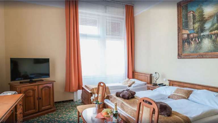 Das Hotel Unio befindet sich im Herzen von Budapest, nur 80 m von der Großen Ringstraße Nagykörút entfernt. Berühmte Sehenswürdigkeiten wie die Andrássy-Straße, das Opernhaus, der Heldenplatz, die Kettenbrücke und das Parlamentsgebäude sind in der direkten Umgebung. Öffentliche Verkehrsanbindungen, darunter eine U-Bahn-Haltestelle, sind in etwa 7 Gehminuten erreichbar. Der Flughafen Budapest liegt ungefähr 12 km entfernt.