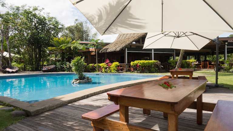 Das Hotel befindet sich in Pacific Harbour und bietet einen wunderschönen Sandstrand. Der nächste Flughafen ist Suva, der etwa 55,8 km entfernt liegt. Die Lage ist ideal für alle, die einen ruhigen und erholsamen Urlaub in der Natur suchen.