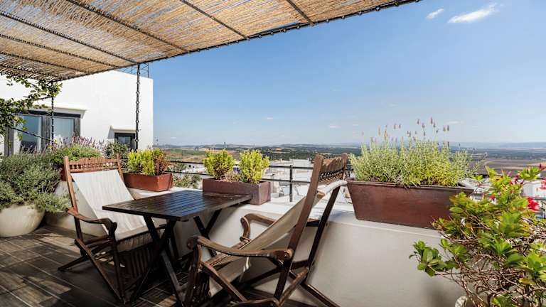 Das Boutique Hotel V befindet sich in zentraler Lage in Vejer de la Frontera, etwa 15 km vom Sandstrand entfernt. Die Altstadt von Vejer mit ihren charmanten Gassen, historischen Gebäuden und gemütlichen Cafés ist nur wenige Gehminuten entfernt. Die privilegierte Lage ermöglicht es Ihnen, die Schönheit der umliegenden Landschaft zu erkunden und die Sehenswürdigkeiten der Region zu entdecken. Der Flughafen Jerez ist ca. 79 km entfernt.