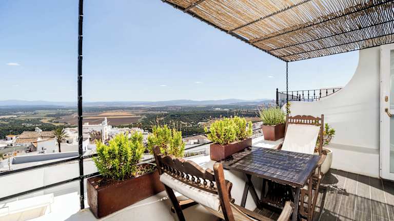 Willkommen im charmanten Boutique Hotel V, einer kleinen Luxusoase im Herzen der malerischen Altstadt von Vejer de la Frontera, einem der faszinierendsten weißen Dörfer an der Costa de la Luz. Tauchen Sie ein in die Geschichte dieses sorgfältig restaurierten Herrenhauses aus dem 16. Jahrhundert, das mit endlosen Details begeistert. Die Zimmer sind mit komfortablen Betten, hochwertiger Bettwäsche und exklusiven Annehmlichkeiten ausgestattet. Jedes verfügt über ein eigenes Bad mit Dusche oder Badewanne, einen Flachbildfernseher und eine Klimaanlage. Einige Zimmer bieten zudem Balkone. Für Ihre Bequemlichkeit bieten wir Ihnen einen kostenlosen Taxi-Service vom beliebigen Punkt in Vejer zu unseren Einrichtungen an. So können Sie Ihr Fahrzeug bequem auf einem Parkplatz oder an einem anderen Ort abstellen und direkt zum Hotel fahren. Im Boutique Hotel V erleben Sie die Magie Andalusiens und genießen gleichzeitig den atemberaubenden Ausblick auf die Landschaft von unserer exklusiven Panoramaterrasse, die einzigartig in ganz Vejer de la Frontera ist. Genießen Sie die Gesellschaft von Freunden oder Ihren Liebsten, während Sie lokale Weine probieren und unsere köstlichen Signature-Cocktails genießen. Das Boutique Hotel V ist der perfekte Ausgangspunkt, um das reiche monumentale Erbe von Vejer zu erkunden. Lassen Sie sich von der historischen Architektur und den kopfsteingepflasterten Straßen verzaubern und tauchen Sie in die Essenz dieses bezaubernden Ortes ein. Darüber hinaus ermöglicht unsere privilegierte Lage, nur 9 km vom Strand El Palmar entfernt, den Genuss goldener Sandstrände und kristallklaren Wassers. Der Benalup Golf & Country Club ist nur 22 km entfernt und der Club de Golf Campano 26 km. Der nächstgelegene Flughafen ist Jerez, der sich 79 km vom Hotel entfernt befindet. Kommen Sie und entdecken Sie die Schönheit von Vejer de la Frontera im unvergleichlichen Komfort und Stil unseres Hotels. Wir erwarten Sie mit offenen Armen!