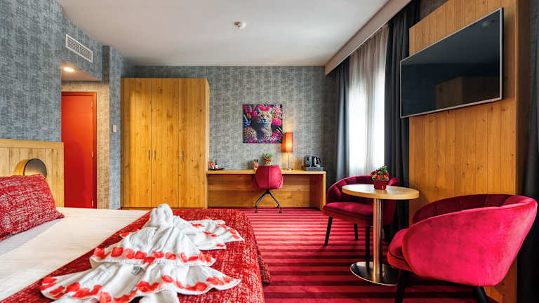 Das Hotel verfügt über 100 Nichtraucherzimmer, die mit modernen Annehmlichkeiten ausgestattet sind. Alle Zimmer verfügen über Sat-TV und ein eigenes Badezimmer mit Badewanne oder Dusche. Einige Zimmer bieten auch eine Whirlpool-Badewanne für zusätzlichen Komfort.