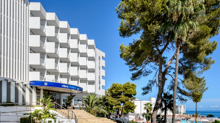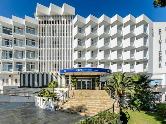 Das Hotel Vibra Riviera ist ein drei Sterne Hotel Hat seinen Standort wenige Meter vom dem Strand von der Bahia de San Antonio entfernt und mit einem herrlichen Meerblick. In der Umgebung des Hotels befinden sich viele Geschäfte, Souvenirs, Boutiquen, Apotheke, und Entertainment für die ganze familie. Das Zentrum von San Antonio ist nur 3 km entfernt. Wenige Meter vom Hotel werden Sie den Strand Punta Xinxó finden. In der Nähe des Hotels befindet sich eine Bushaltestelle die Sie mit den verschiedenen Buchten verbindet sowie mit dem Zentrum von San Antonio. Sie haben auch die Möglichkeit die Boote die vom Strand abfahren zu benutzen. In der Umgebung können Sie viele Sportarten ausüben so wie Wasserski, Tauchen, Tennis, Parasailing, mit dem ‘"Banana boat’’fahren, Mini golf.