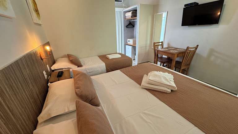 Das Hotel Vicino al Mare befindet sich direkt am Strand von Enseada in Guarujá. Die Lage ist ideal für Strandliebhaber, die das kristallklare Wasser und den feinen Sand genießen möchten. In der Nähe des Hotels gibt es auch eine Bushaltestelle und den Hafen von Guarujá. Der nächste Flughafen ist der Flughafen São Paulo/Congonhas, der etwa 60 km entfernt liegt.
