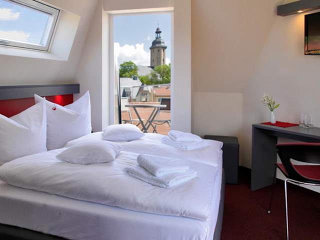 Das Hotel VielHarmonie befindet sich in zentraler Lage in Jena, nur 200 m vom imposanten Jentower entfernt. Die Lage des Hotels ermöglicht es Ihnen, bequem zu Fuß die vielen Sehenswürdigkeiten der Stadt zu erkunden. In unmittelbarer Nähe befinden sich das Optische Museum Jena und die Goethe-Gedenkstätte. Der Flughafen Erfurt ist etwa 44 km entfernt.