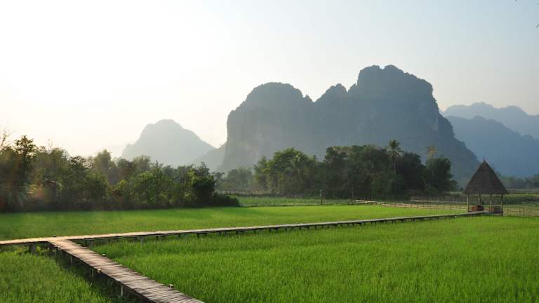 Das ViengTara VangVieng Resort befindet sich nur einen 2-minütigen Spaziergang vom Ufer des Nam Song River entfernt. Die Lage des Resorts bietet einen atemberaubenden Blick auf die Reisfelder und ist der ideale Ausgangspunkt, um die Schönheit der Umgebung zu erkunden.