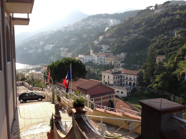 Das Vietri Coast Hotel befindet sich in Vietri sul Mare, einer charmanten Stadt an der Amalfiküste. Die Lage ist ideal, da Sie nur 300 m vom Meer entfernt wohnen und die Altstadt bequem mit dem privaten Aufzug des Hotels erreichen können. Vietri sul Mare ist bekannt für seine Keramikproduktion und bietet eine malerische Umgebung mit engen Gassen und bunten Häusern. Die Amalfiküste mit ihren atemberaubenden Landschaften und charmanten Städten wie Amalfi und Positano ist nur eine kurze Fahrt entfernt.