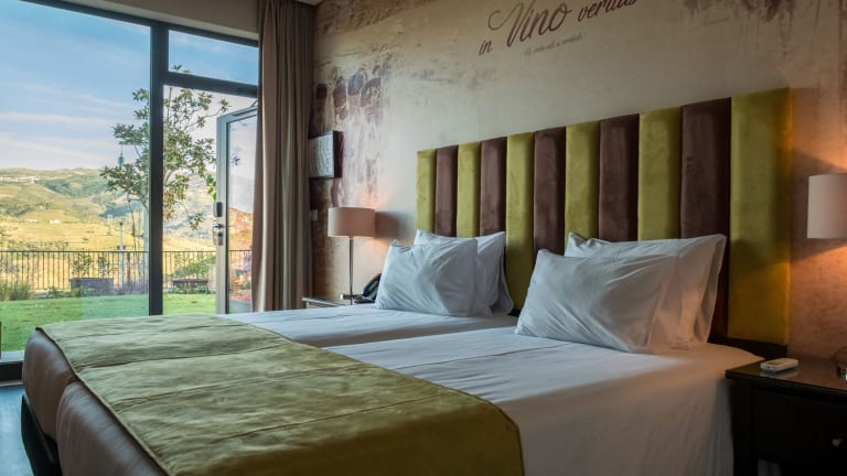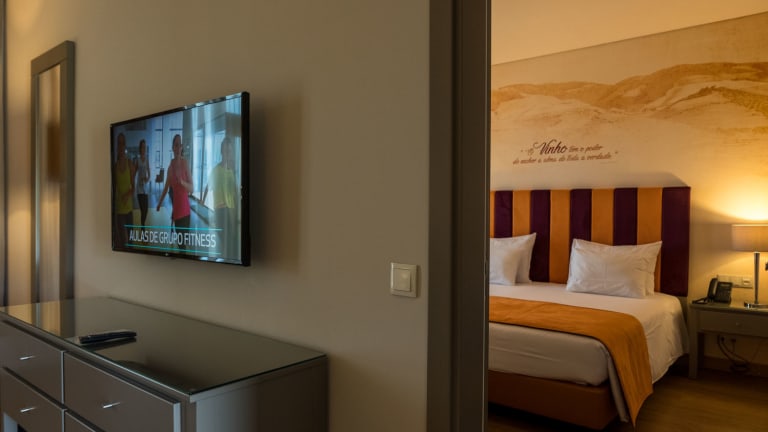 Mit einem atemberaubenden Ausblick auf die Flüsse Douro und Tedo taucht mitten im Herzen des Douro-Weinbaugebiets das Vila Galé Douro Vineyards auf. Diese Einheit mit einer starken Land- und Weintourismuskomponente gehört zum jahrhundertealten Gutshof Quinta do Val Moreira, der schon auf der berühmten Karte des Barons de Forrester zu finden ist, die dieser im 19. Jahrhundert zeichnete und mit der er sich einen Namen als Kartographen machte. Am Südufer des Douro, ganz in der Nähe des pittoresken Dorfes Marmelal gelegen, befindet sich das Gelände des Vila Galé Douro Vineyards in unmittelbarer Nähe eines der zwei auf Befehl des Marquês de Pombal im Jahre 1757 errichteten Monumente. Diese unter Denkmalschutz gestellten Bauten dienten als Grenzmarken des Douro-Weinbaugebietes, das damals von der Companhia Geral da Agricultura das Vinhas Douro verwaltet wurde. So entstand das älteste Weinbaugebiet der Welt. Heute machen die terrassenförmigen Weinberge die Landschaft rund um diese dem Land- und Weintourismus gewidmete Hoteleinheit einmalig. Das Hotel Vila Galé Douro Vineyards zeichnet sich aus durch seine Lage, seinen Charme und seine Exklusivität. Hier können Sie die Ruhe und Stille genießen, die Landschaft, aber auch das Freibad und die regionale Gastronomie des Restaurants Val Moreira, dessen Panoramafenster Ihnen den Ausblick auf die Umgebung gestatten. Und ebenfalls die Weinkellerbesuche und die Port- und Tafelweinverkostungen der Marke Val Moreira, die vor Ort hergestellt werden.. Sie können auch noch die Gelegenheit zu Spaziergängen durch die Weinberge, die Oliven- und die Mandelbaumhaine nutzen (insbesondere während der Mandelbaumblüte), immer mit den Flüssen Tedo und Douro in Sichtweite. Um Ihren Aufenthalt voll auszunutzen, machen Sie eine Kreuzfahrt auf dem Douro, besuchen Sie die Weingüter der Region oder machen Sie einen Ausflug mit der Eisenbahn. Sie können auch die Mandelbaumblüte bewundern oder an der Weinlese teilnehmen.