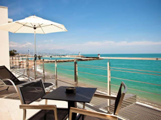 Das Hotel Villa Azur in Villeneuve-Loubet bietet eine moderne Unterkunft direkt am Strand neben dem Yachthafen Baie des Anges. Hier können Sie eine entspannte Atmosphäre genießen und sich auf eine große Terrasse mit Sonnenliegen freuen. Das hoteleigene Restaurant verwöhnt Sie mit französisch-italienischer Küche und das kontinentale Frühstück sorgt für einen guten Start in den Tag. Die Zimmer sind klimatisiert und verfügen über einen Balkon, einen Flachbild-TV, eine Minibar und einen Safe. WLAN und Privatparkplätze sind kostenlos verfügbar.