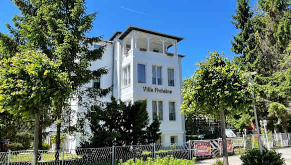 Die Pension Villa Frohsinn Sellin auf Rügen befindet sich in zentraler Lage in der Stadt Sellin und ist nur wenige Minuten von der Promenade und der Ostseeküste entfernt. In der Umgebung finden Sie Geschäfte, Cafés und Restaurants. Die beliebte Seebrücke Sellin ist ebenfalls in der Nähe und nur 950 m entfernt.