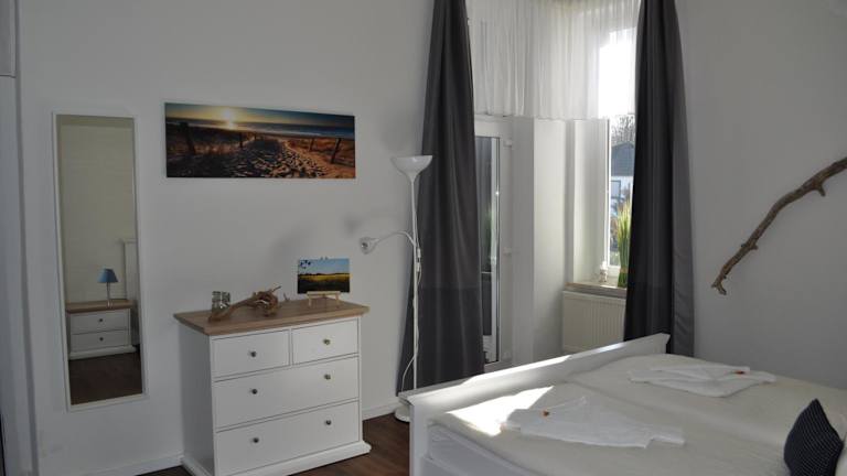 Die Pension Villa Frohsinn Sellin auf Rügen bietet helle Zimmer und Apartments im klassischen Stil. Die Zimmer sind mit einem Flachbild-TV ausgestattet und bieten eine schöne Aussicht auf den Garten. Die Apartments verfügen zudem über eine Küchenzeile, die ideal ist, um hausgemachte Mahlzeiten zuzubereiten. Die Badezimmer sind geräumig und bieten viel Komfort.