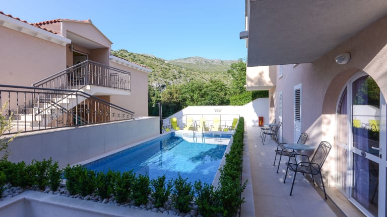 Die Villa Lanterna verfügt über 12 Zimmer, die komplett ausgestattet sind und den Gästen den neuesten ökologischen Standards entsprechen. Jedes Zimmer verfügt über eine Küche mit 2 Kochfeldern, einer Mikrowelle und einem Kühlschrank. Die Zimmer werden täglich gereinigt und bieten allen Komfort, den Sie für einen angenehmen Aufenthalt benötigen. Einige Zimmer verfügen über einen Balkon oder eine Terrasse mit Meerblick, von wo aus Sie die herrliche Aussicht auf die Bucht von Zaton genießen können.