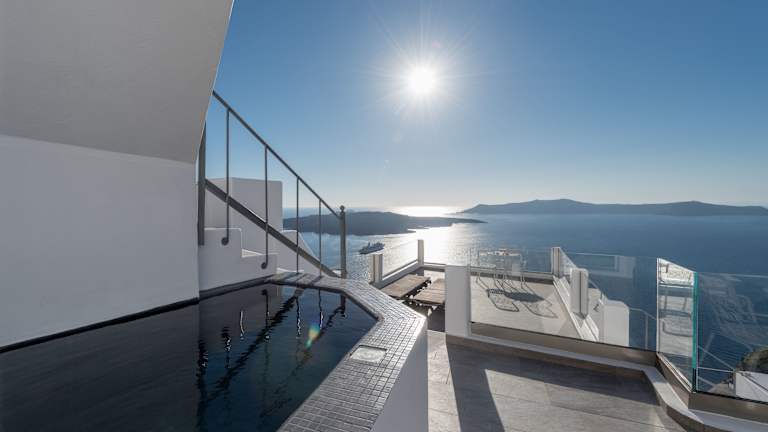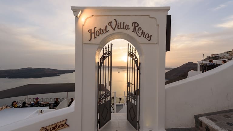 Das Hotel Villa Renos ist ein charmantes Boutique-Hotel im Kykladen-Stil, das eine atemberaubende Aussicht auf die Caldera von Santorin bietet. Hier können Sie in komfortablen Zimmern mit geräumigen Balkonen entspannen und den Panoramablick auf die Ägäis und den Vulkan genießen. Das Hotel bietet auch ein griechisches Frühstück mit lokalen Produkten und eine ganztägig geöffnete Cocktailbar, in der Sie den berühmten Sonnenuntergang bewundern können. Die freundlichen Mitarbeiter an der 24-Stunden-Rezeption stehen Ihnen gerne zur Verfügung, um Ihnen bei der Organisation von Ausflügen und Mietwagen zu helfen.